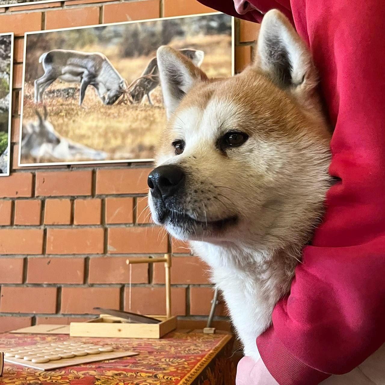 Одинокого акита-ину обнаружили на берегу Байкала летом 2025 года. Теперь собака временно проживает в Сибирском зоопарке, ожидая возвращения владельца со службы.