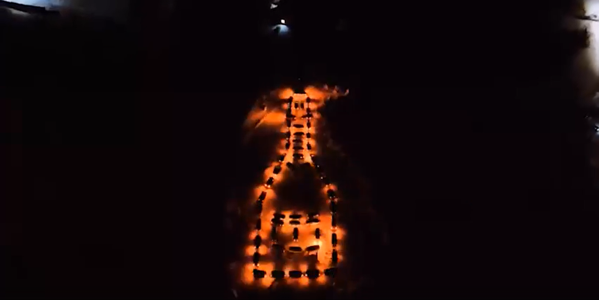 Автоколонна в Братске, выстроившаяся в виде бутылки шампанского с фейерверком