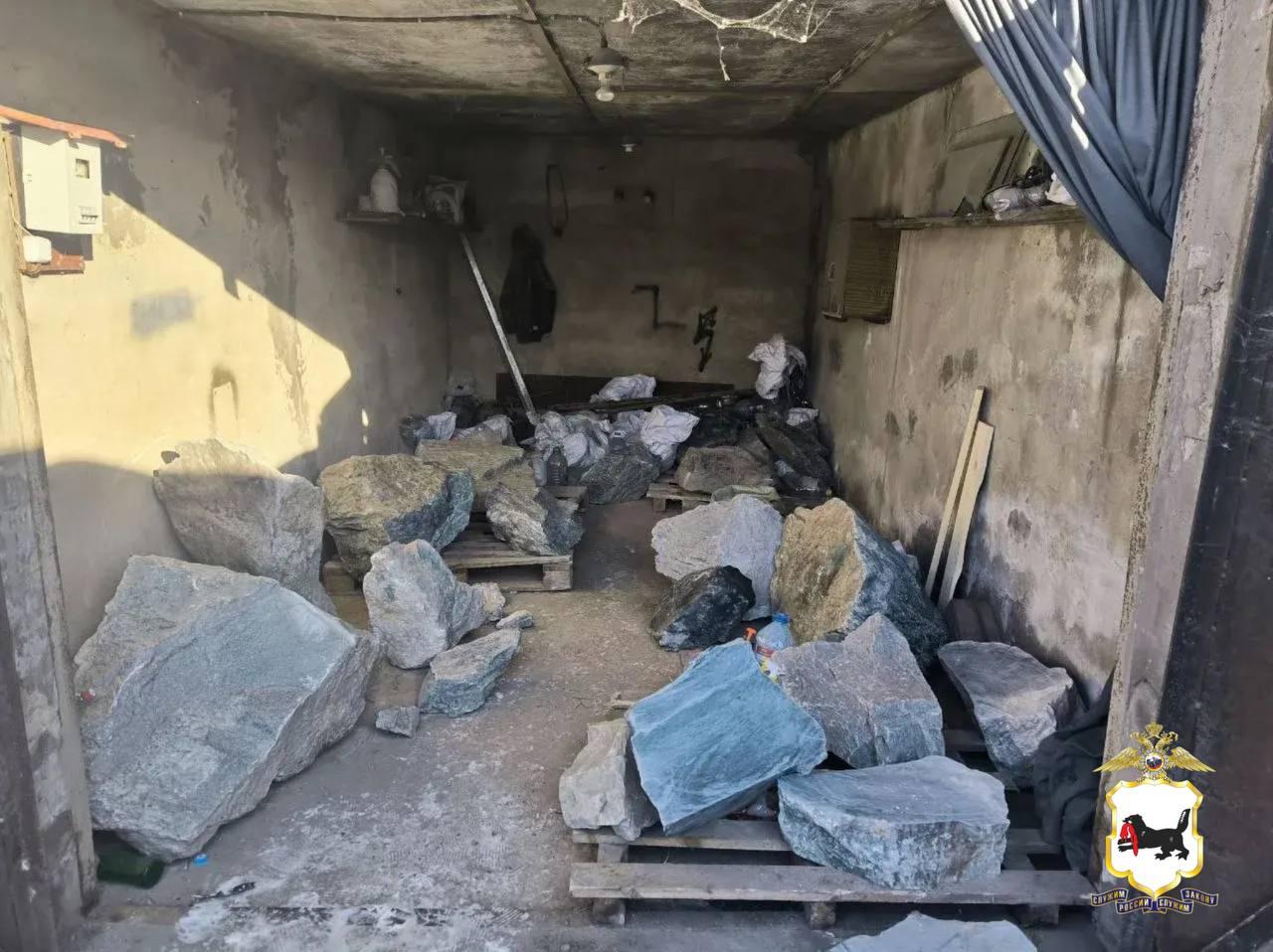 В пресс-службе регионального управления МВД сообщили: «На территории земельного участка знакомого подозреваемый хранил 7 камней весом более 1,5 тонн, а в арендованном гараже 121 камень весом более 5 тонн. Проведенная экспертиза показала, что изъятые камни являются нефритом весом более 6,5 тонн. Задержанный пояснил, что изъятое досталось ему от товарища».