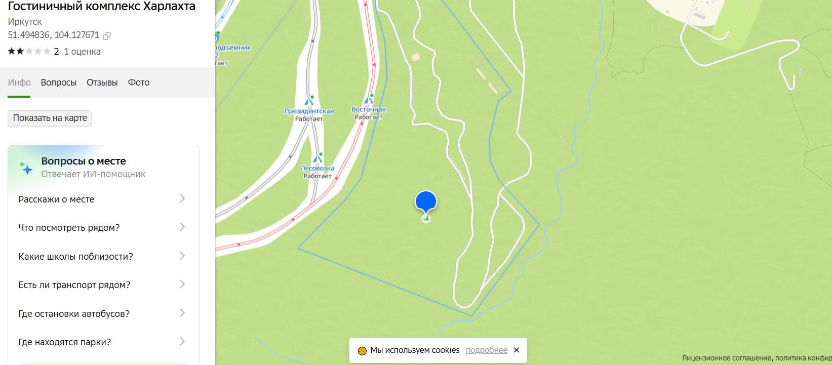 В долине реки Харлахты также ведется строительство гостиничного комплекса в границах особой экономической зоны, как показано на картах 2ГИС.
