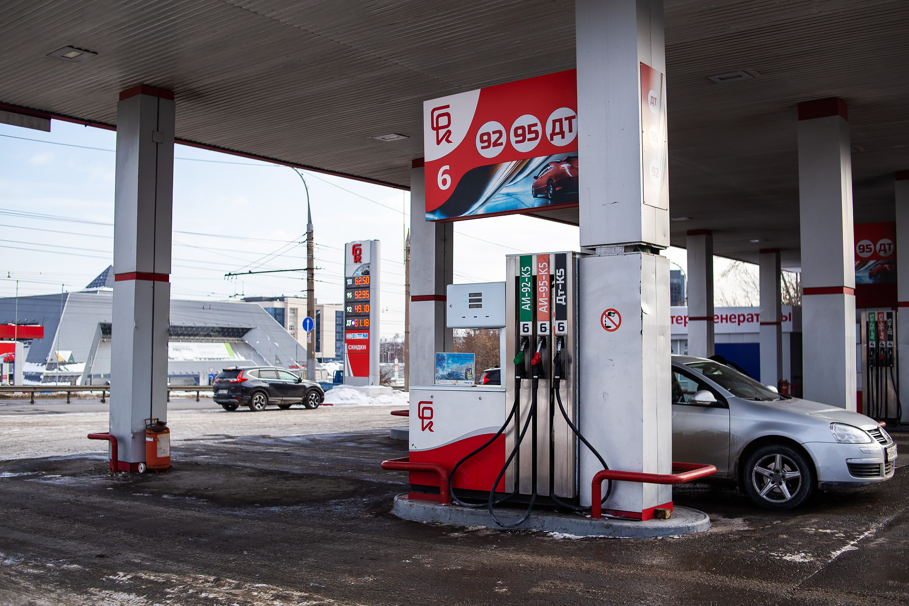 На АЗС «Роснефти» цены остались без изменений и по-прежнему являются самыми низкими в городе. Бензин АИ-92 здесь стоит 61 рубль 23 копейки, АИ-95 — 64 рубля 70 копеек, АИ-100 — 87 рублей 60 копеек. Дизельное топливо также самое дешевое — 80 рублей 50 копеек за литр.