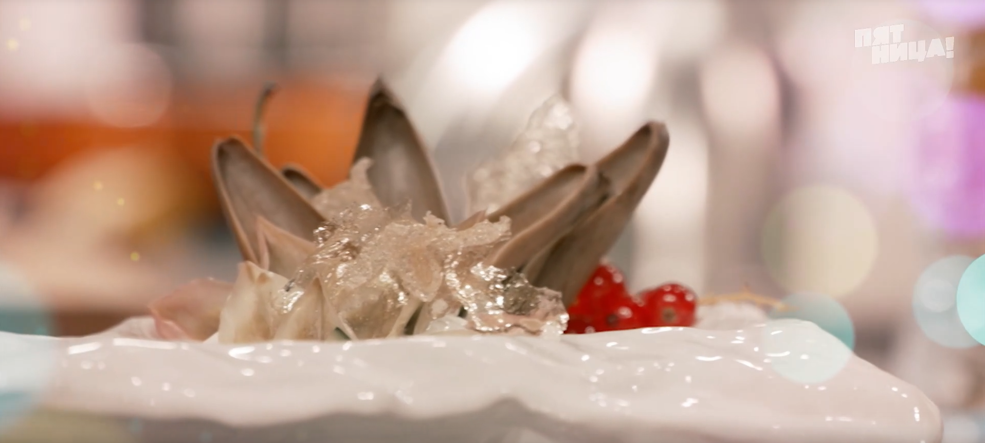 Каждому шефу выдали специальный инвентарь. Якубов получил насадку для блендера, предназначенную для текстуризации, и решил приготовить чипсы из нори с десертом из артишоков и свежих ягод.