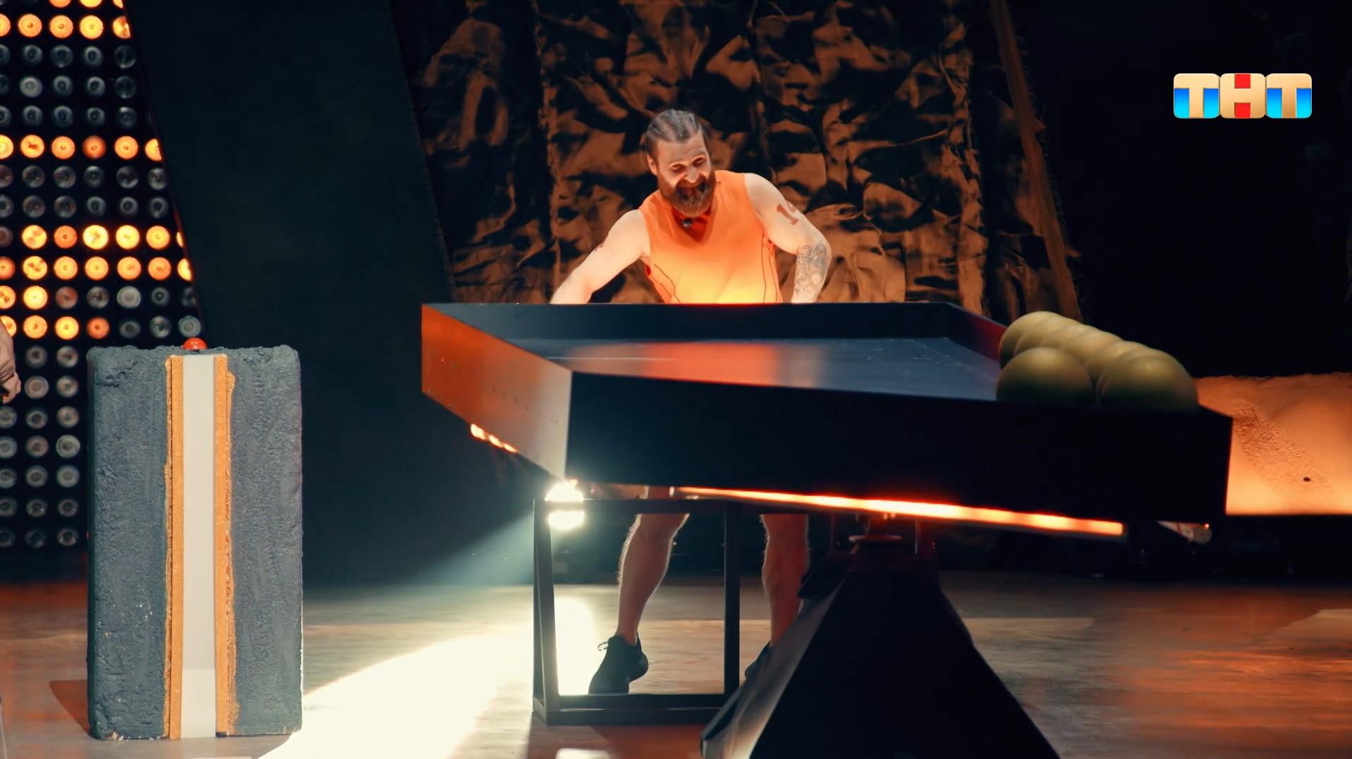 Первой на площадку вышла команда, где Анатолий Надратовский был единственным представителем первого сезона среди четырех участников второго. Ему достался силовой балансир. «Стол-то довольно нелегкий, и, для того чтобы выше поднять стол, мне приходилось вставать на носочки. До такой степени стою на носках, что ноги начинают трястись», — рассказал спортсмен после прохождения этапа за пять минут. В итоге его команда уложилась чуть более чем в 20 минут, что позволило ей уверенно пройти в следующий раунд.