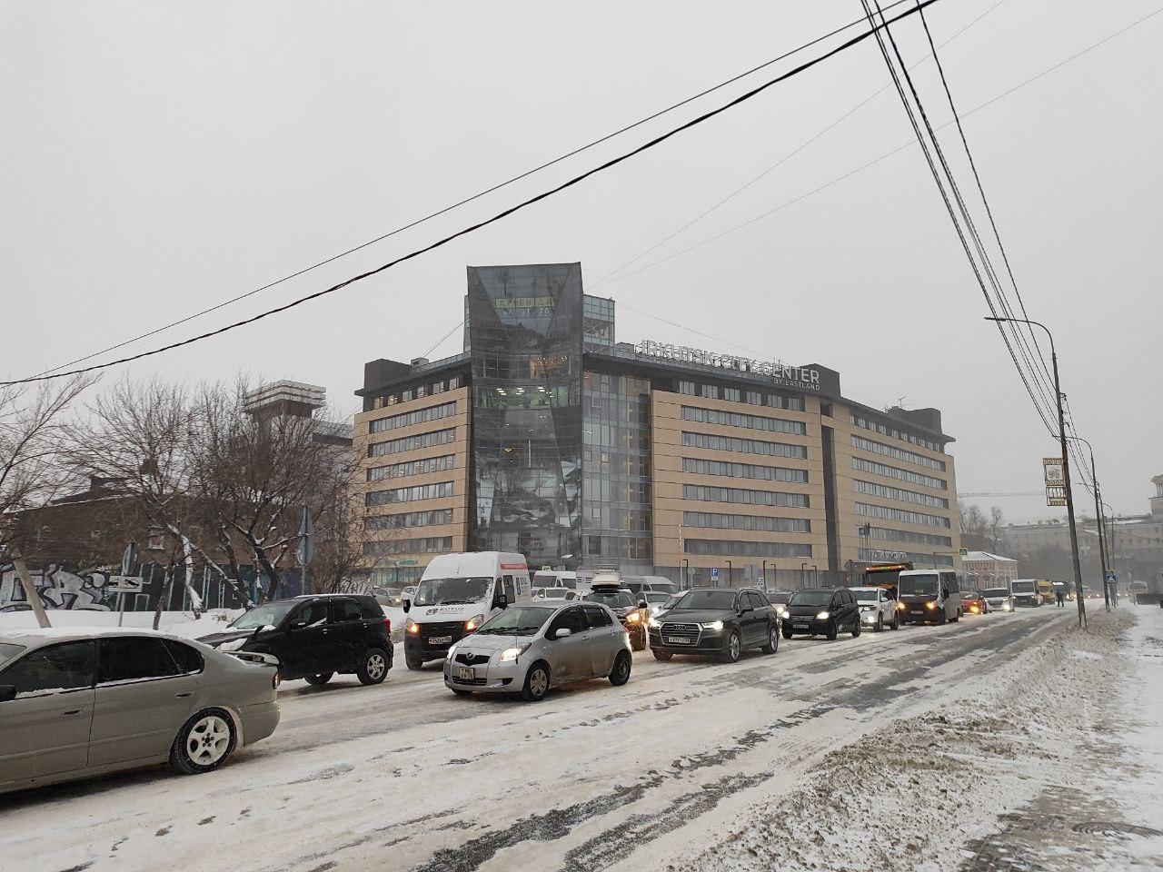 Заторы образовались на всех ключевых магистралях, ведущих из центра в жилые кварталы. Непростая ситуация сложилась и в самом сердце города.