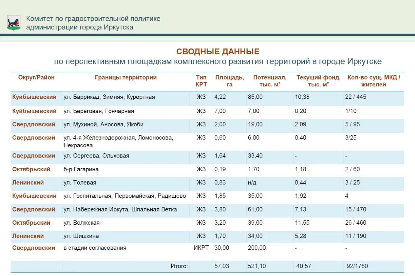 Два из этих участков находятся вблизи ГЭС. Один ограничен улицами Ангаргэсстроя, Безбокова Бочкина, Гидростроителей и Крупской, где может быть расселено 17 домов. Другой расположен на улицах Безбокова, Бродского и Касаткина.