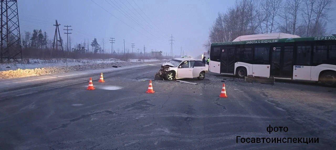 Ранним утром 28 февраля в Братске автомобиль Honda Civic столкнулся с автобусом, водитель легковушки скончался.