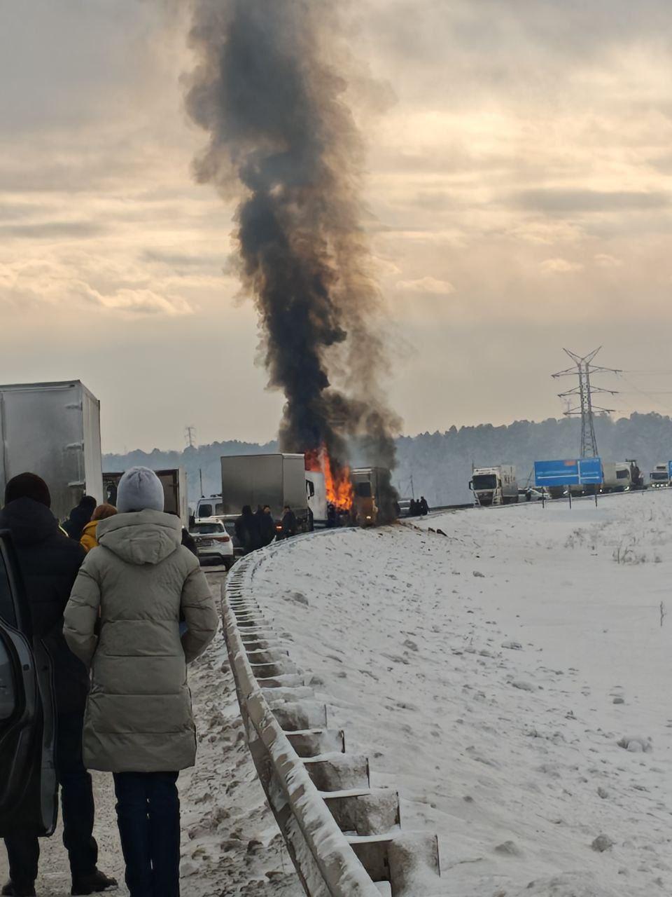 Возгорание грузовика после дорожной аварии в Усольском районе 8 января