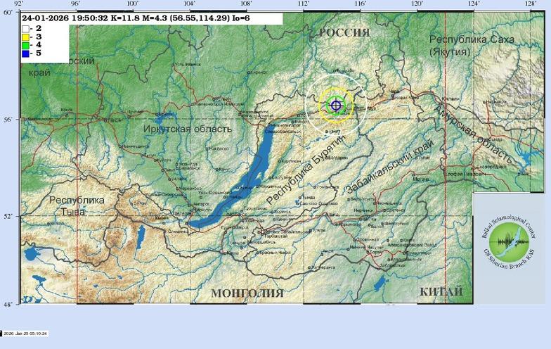 Байкальский филиал Единой геофизической службы РАН сообщил о землетрясении, которое произошло в ночь на 25 января на границе Иркутской области и Республики Бурятия.