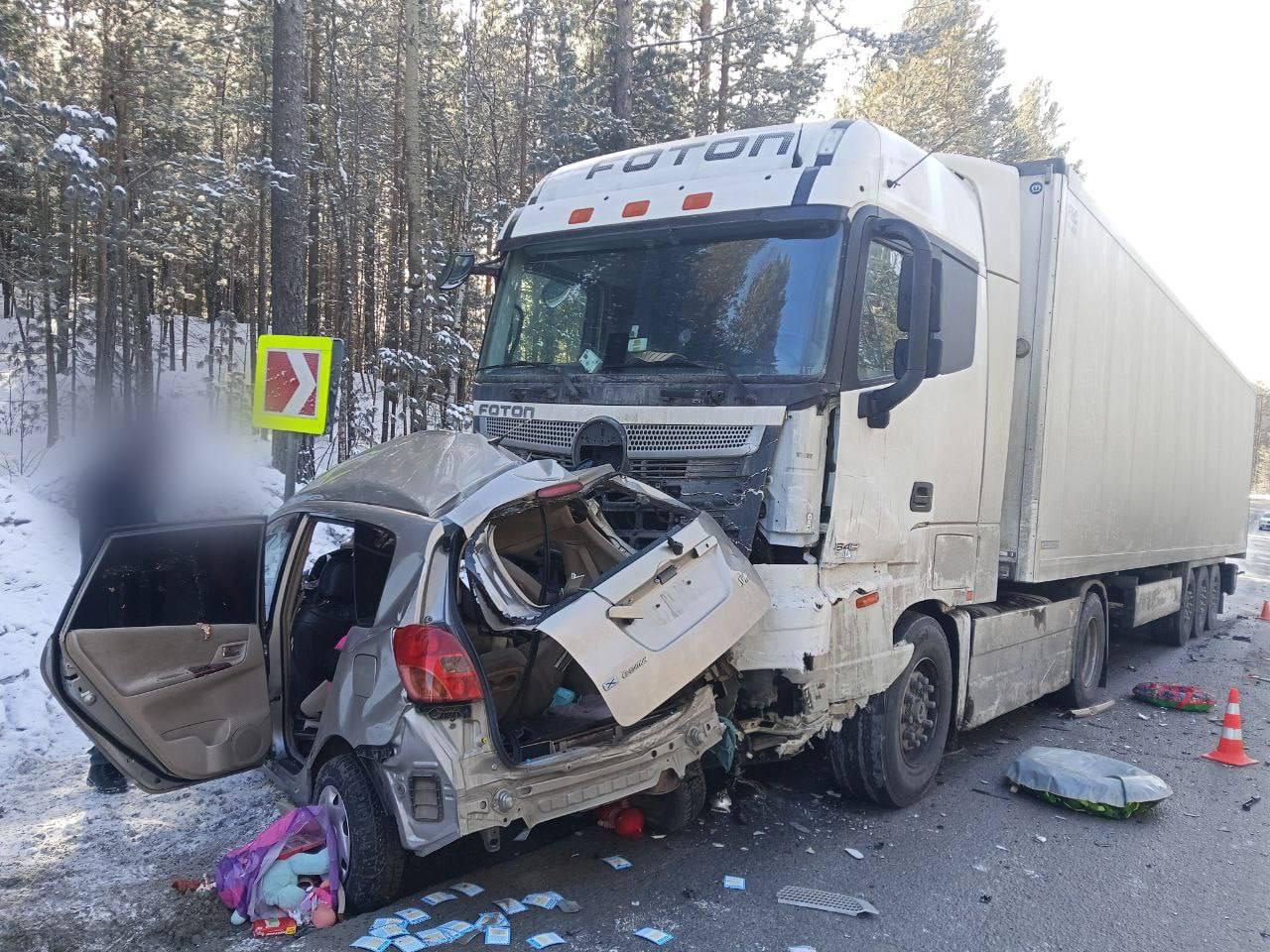 По предварительным данным, легковой автомобиль двигался со стороны Иркутска. Водительница не справилась с управлением, в результате чего машина оказалась на полосе встречного движения, где и произошло лобовое столкновение с грузовиком.