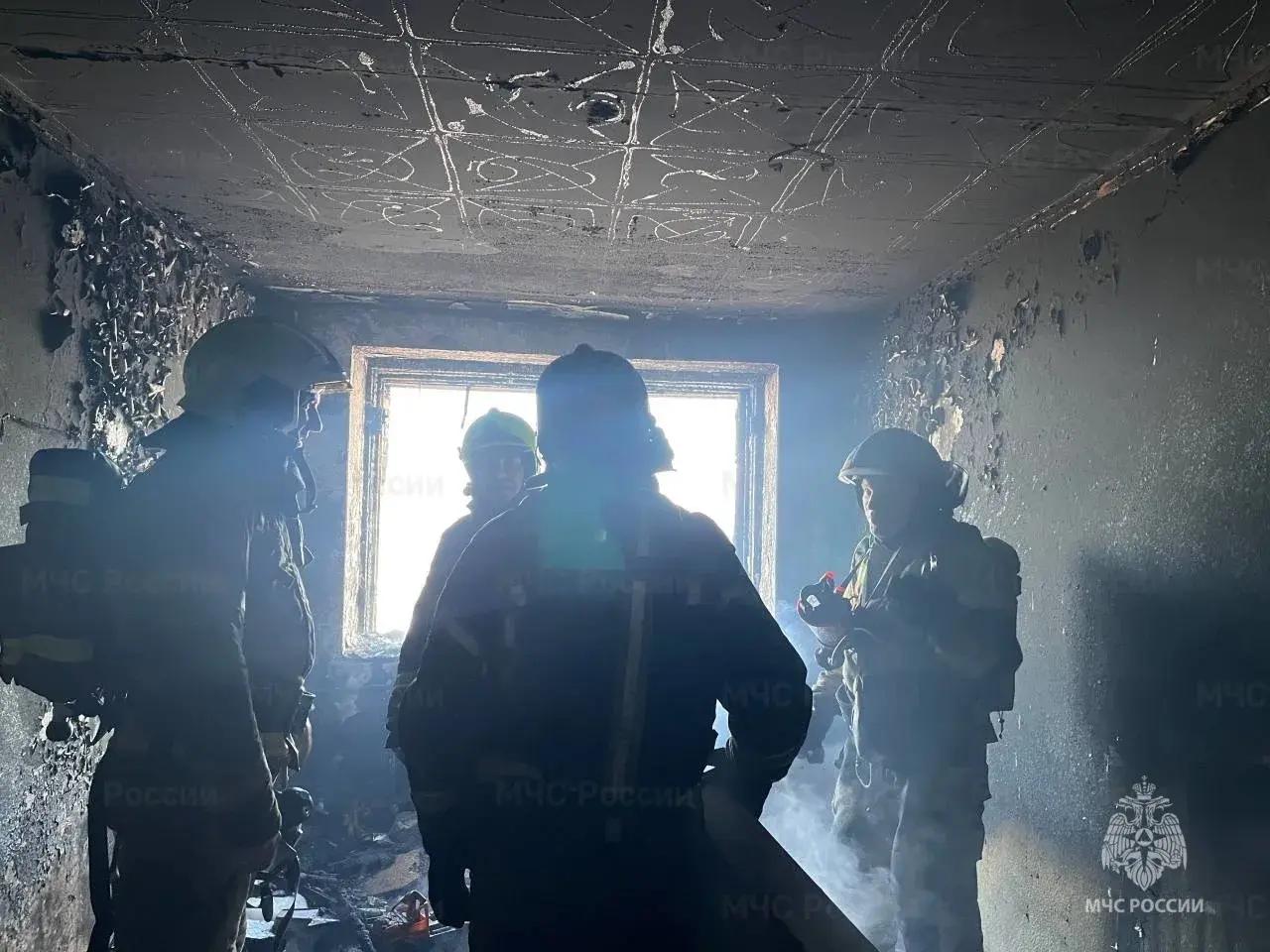 Сигнал о возгорании поступил в службу спасения в 10:42. Женщина рассказала, что из-за сильного задымления в трехкомнатной квартире она не могла выйти наружу вместе с сыном.