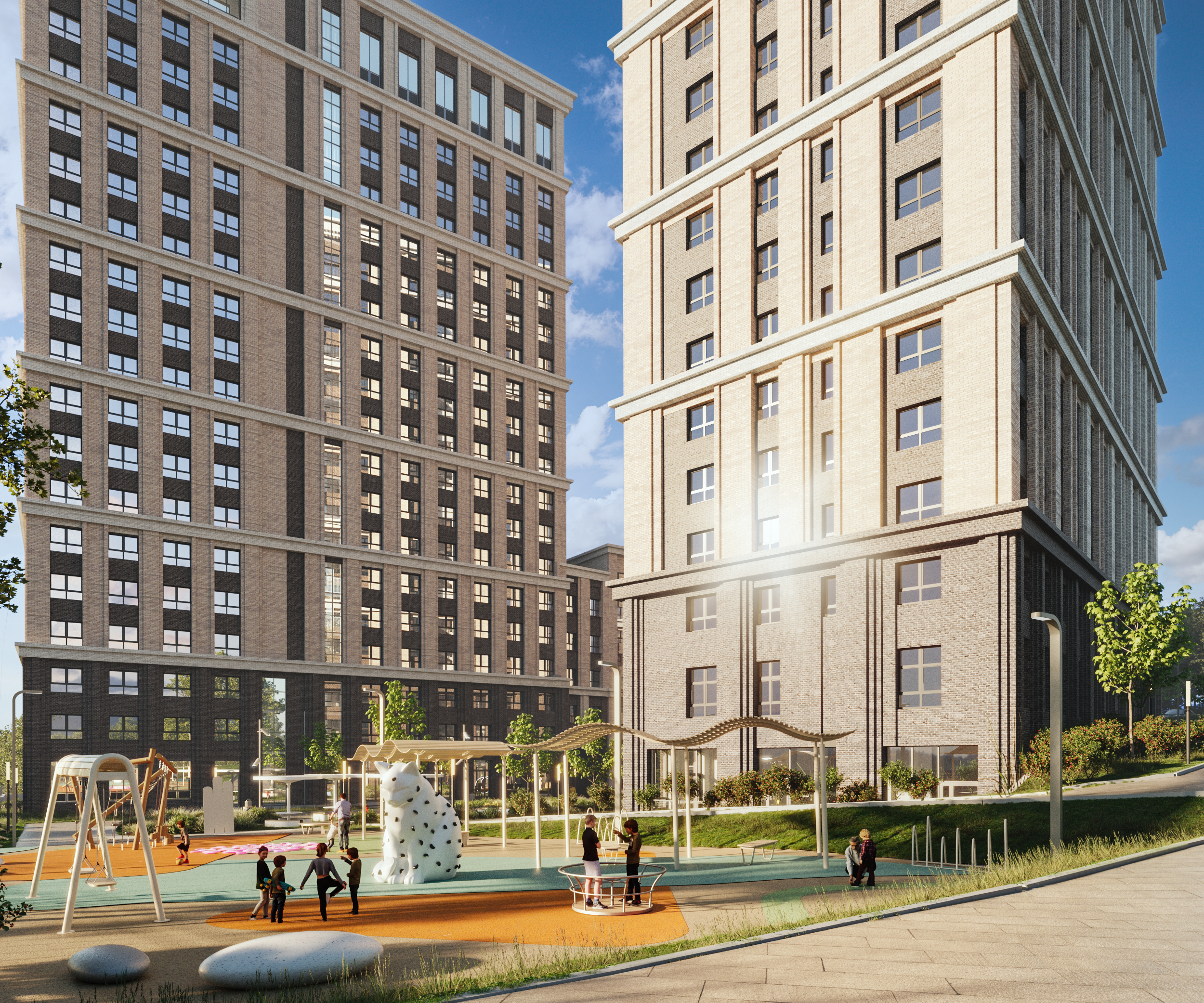 Для жителей комплекса обещают закрытый двор с велодорожками, зонами отдыха, спортивными и детскими площадками. Также в проекте предусмотрен подземный паркинг на 170 машиномест.