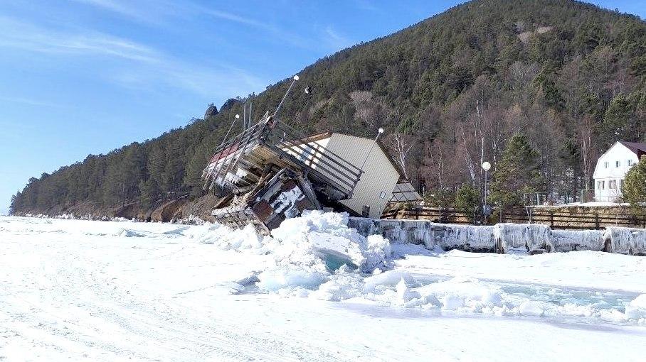 Директор Научно-исследовательского института биологии озера Байкал Иркутского государственного университета Максим Тимофеев 23 марта сообщил в Telegram о разрушении причала Лимнологического института СО РАН в поселке Большие Коты. Ледовая масса перевернула конструкцию.