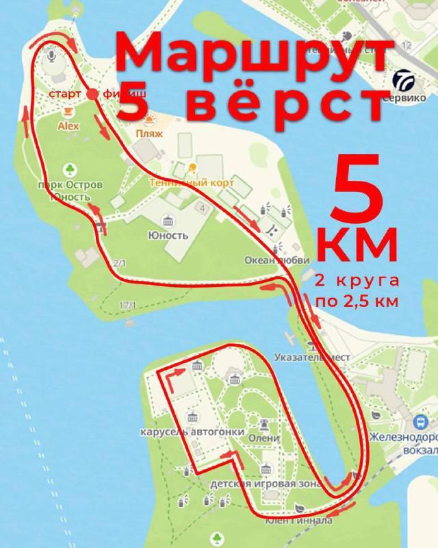 Мероприятие проводится в рамках акции «5 верст на острове Юность». Стартовая точка расположена между сценой «Ракушка» и кафе «Остров».