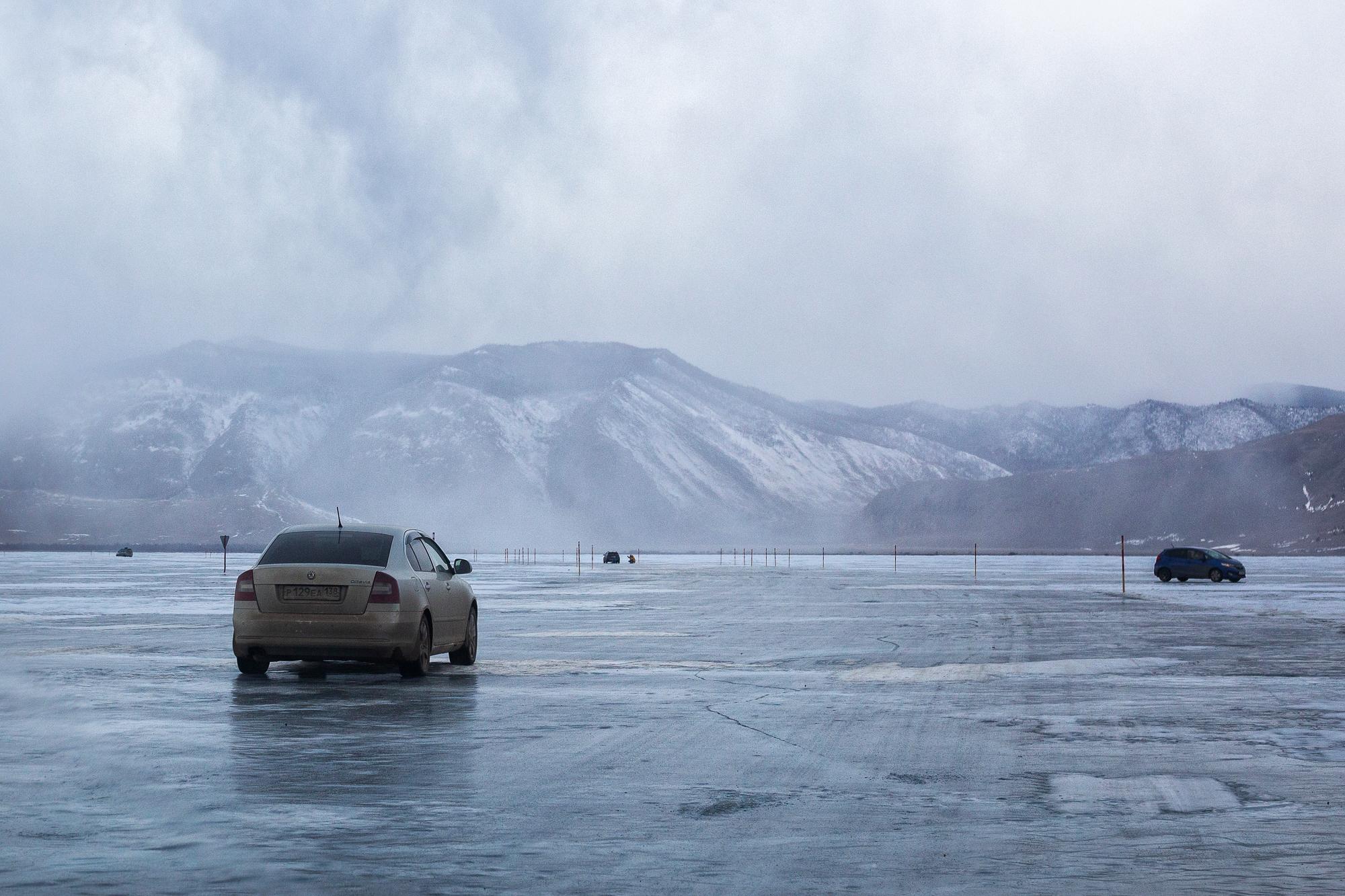 Кадры с ледовой трассы на Ольхон, снятые водителями