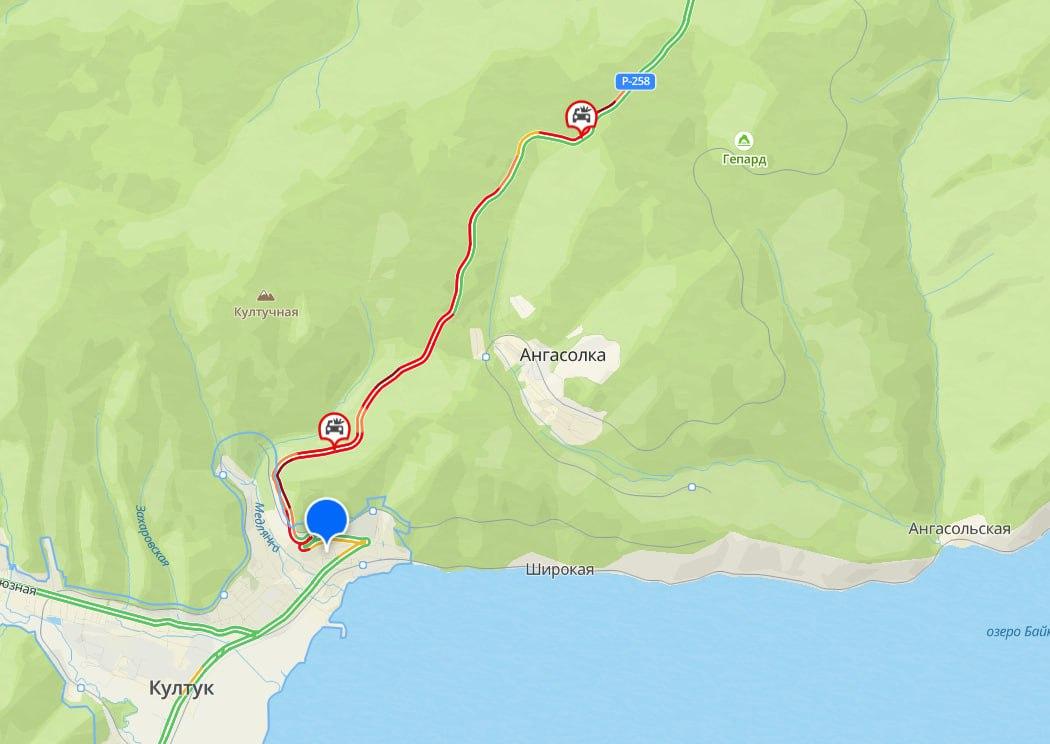 Движение также осложнено на въезде в посёлок Култук. По данным сервиса 2ГИС, на трассе зарегистрированы два дорожно-транспортных происшествия. Как сообщает источник «Слива», на Култукском тракте введено реверсивное движение.